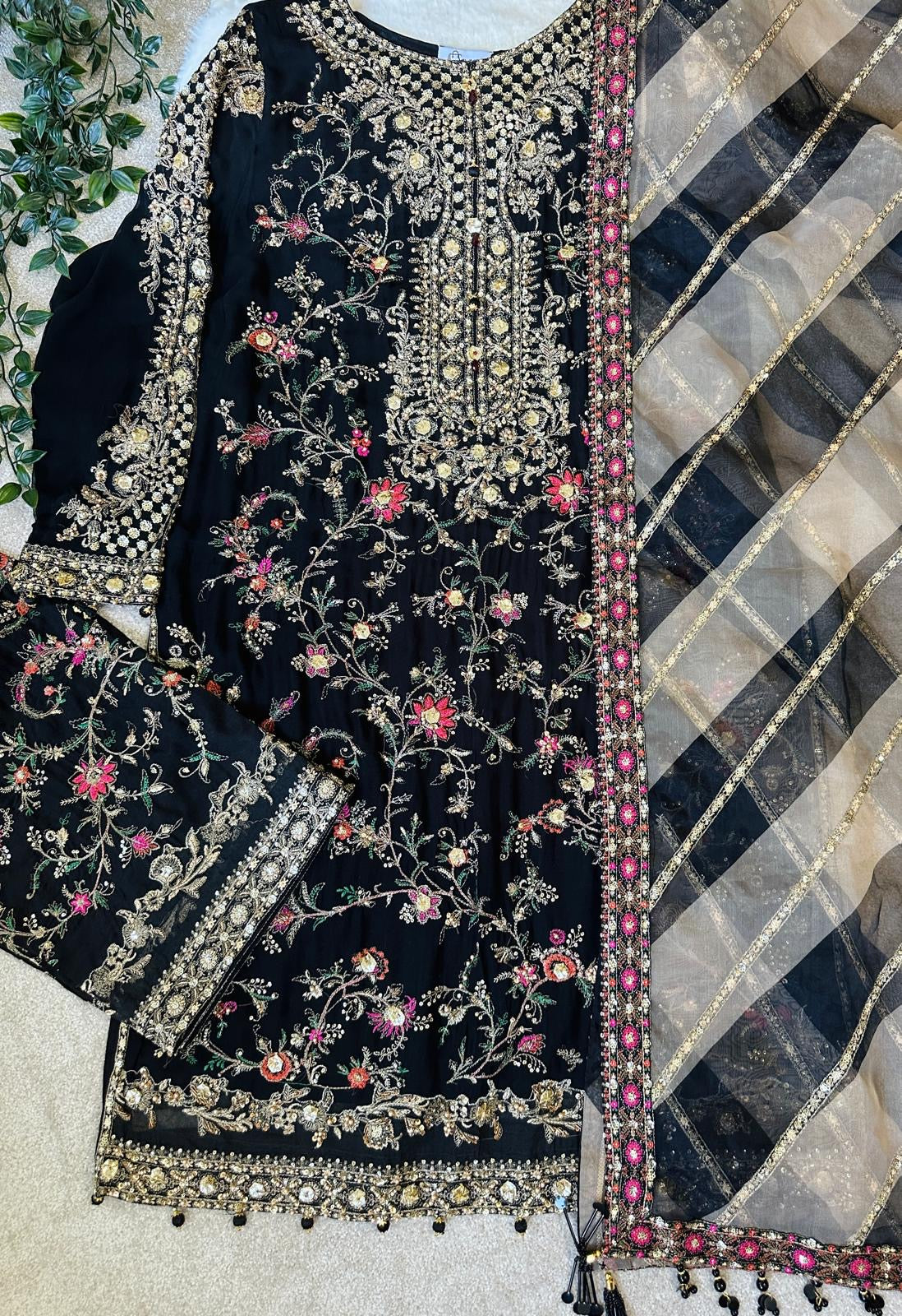 Embroidered & Adda Work Dyed Chiffon Sleeves