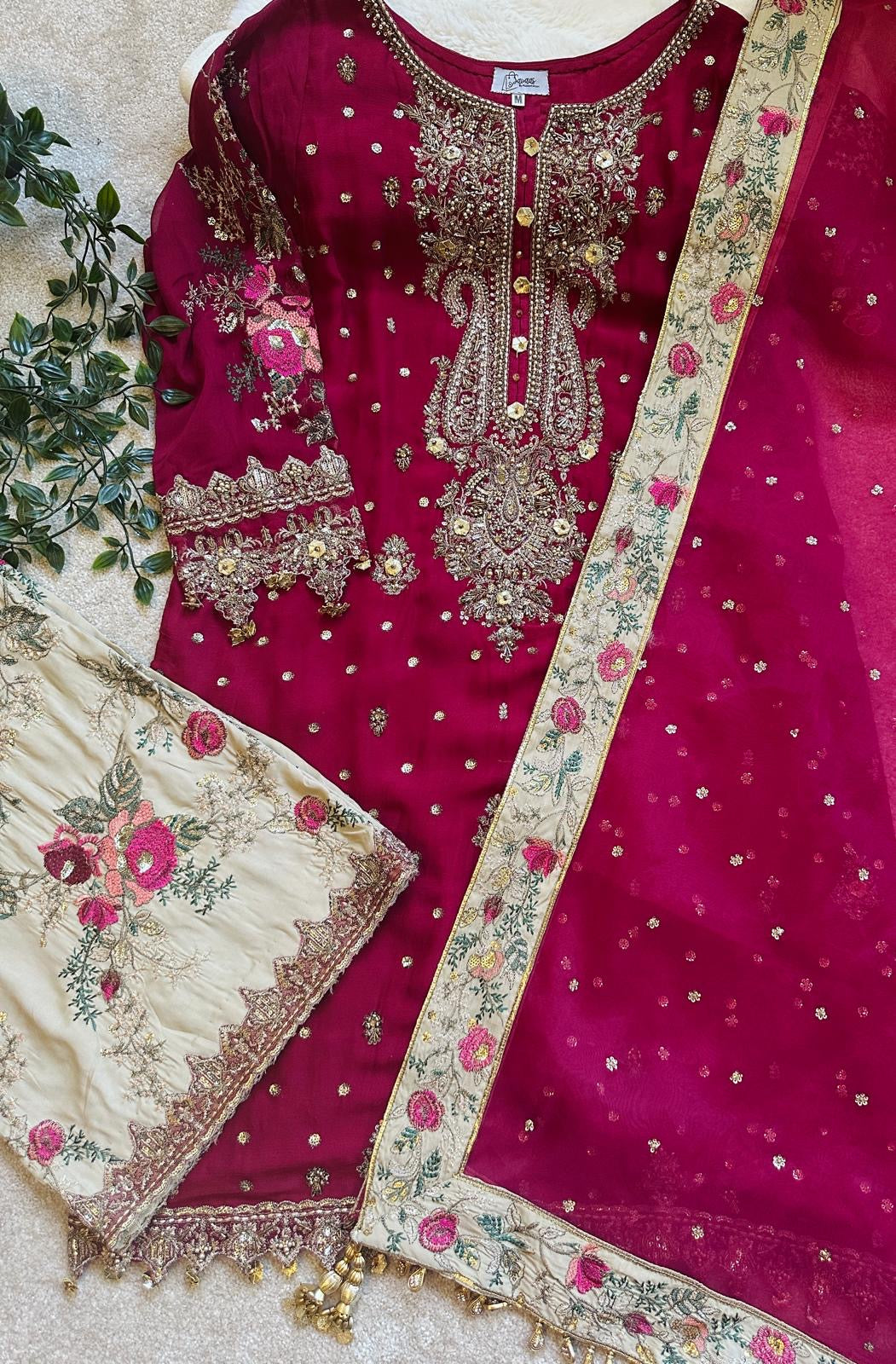 Embroidered & Adda Work Dyed Chiffon Sleeves