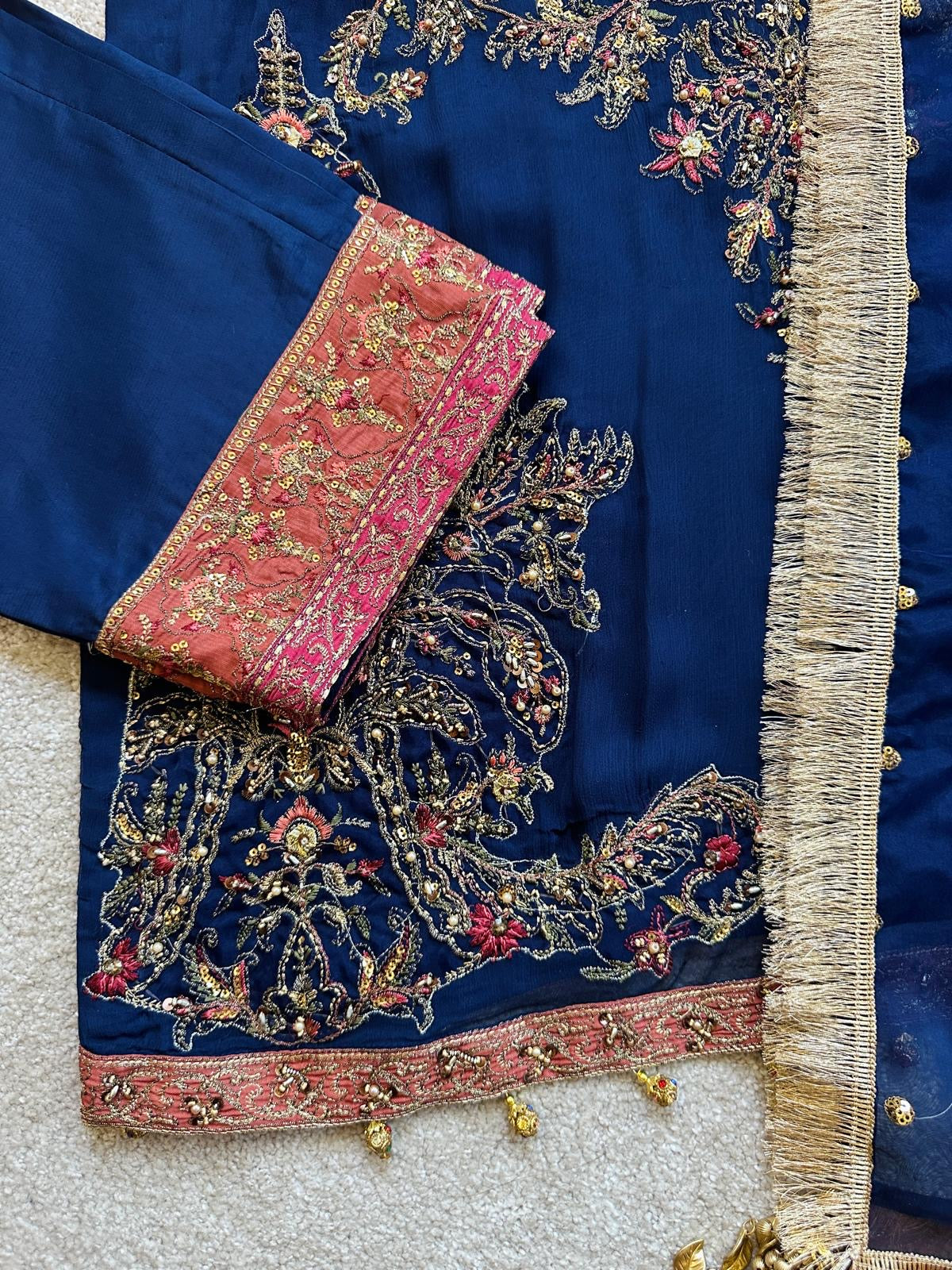 Embroidered & Adda Work Front and Sleeves Patti